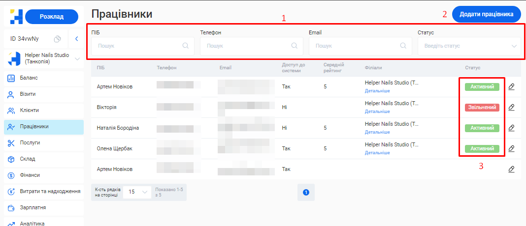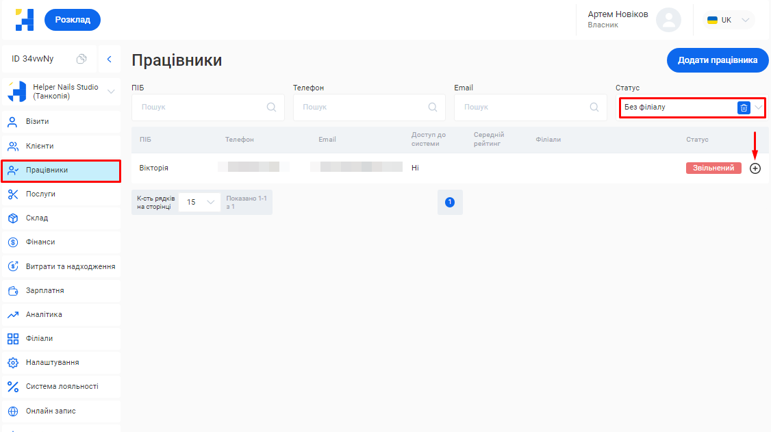 - В поле «Номер телефону» введіть контактний номер телефону співробітника у форматі +380ХХХХХХХХХ.
