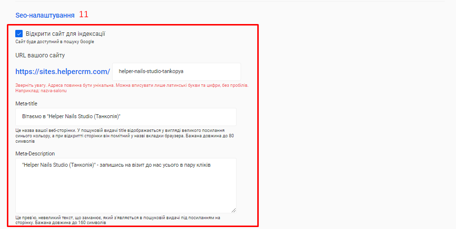 - Додайте назву вашої компанії в поле «Назва». Наприклад, Helper Nails Studio.