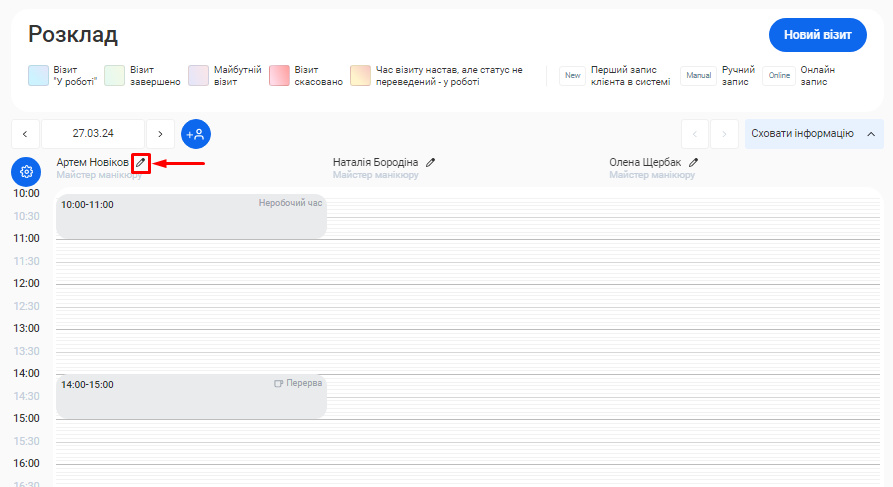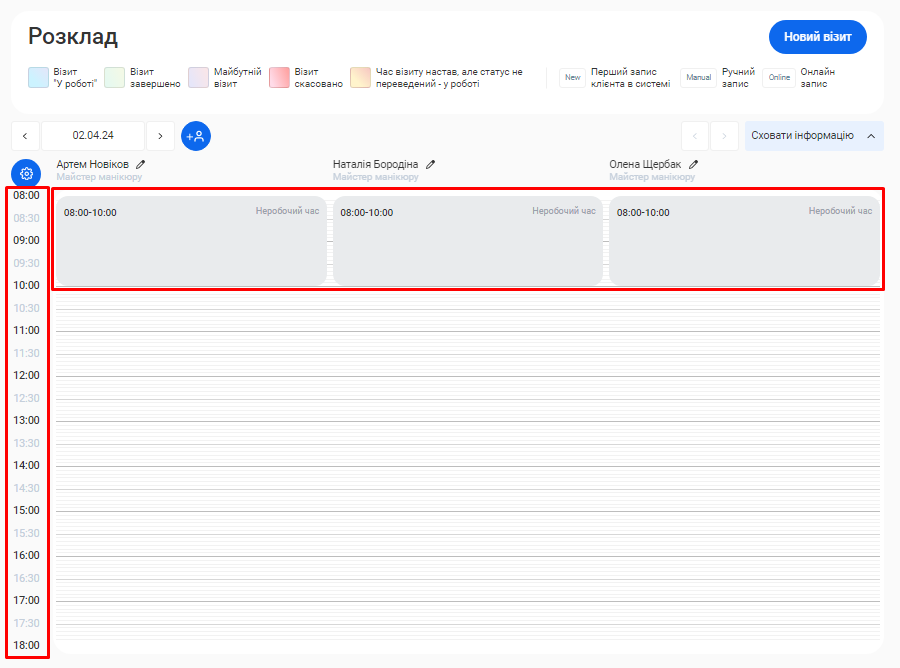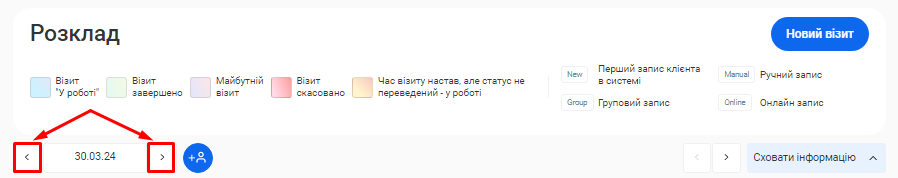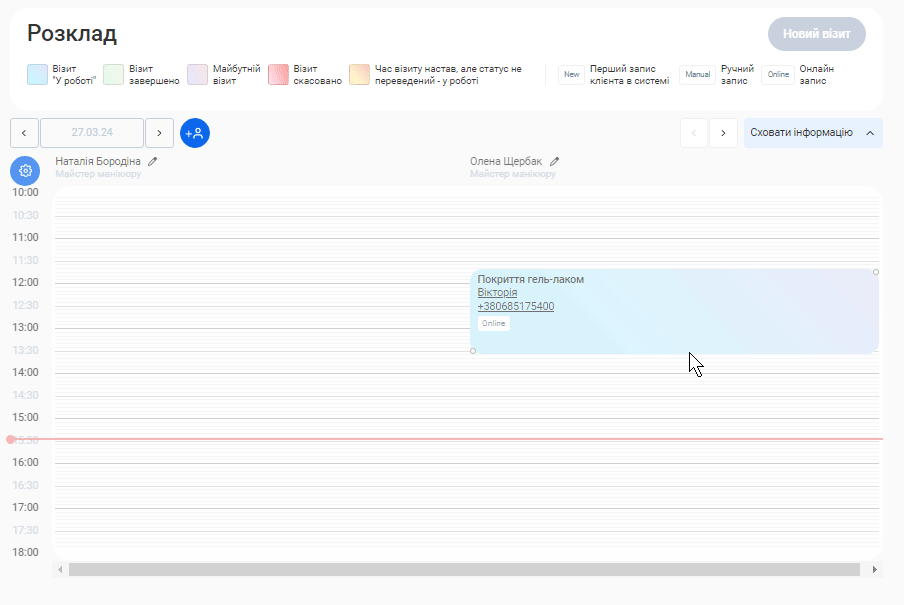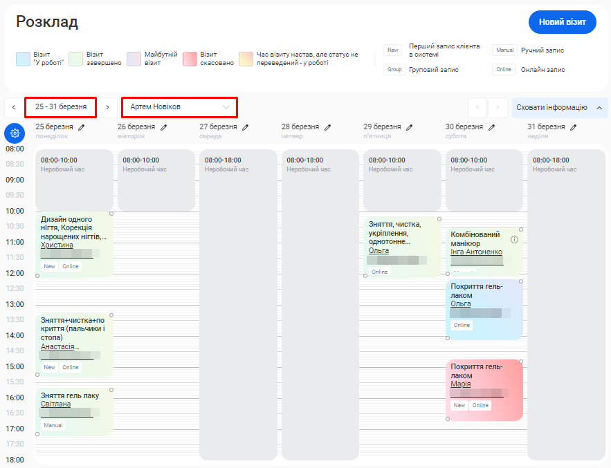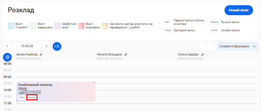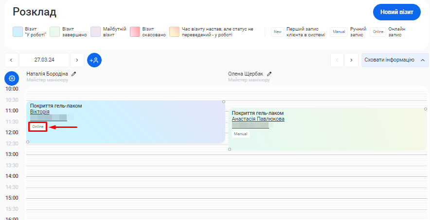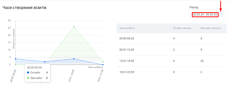 - Для отримання більш чіткої картини, окремо показано дані як по онлайн записам, так і по записам, що були створені вручну.