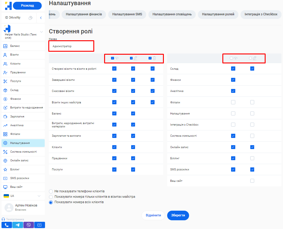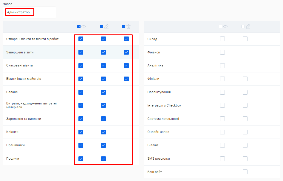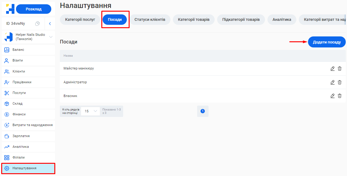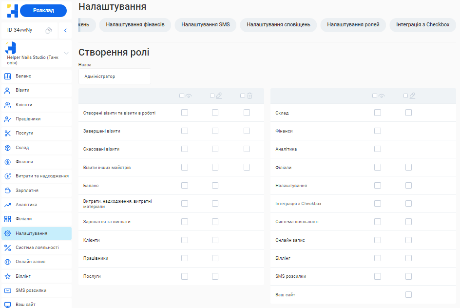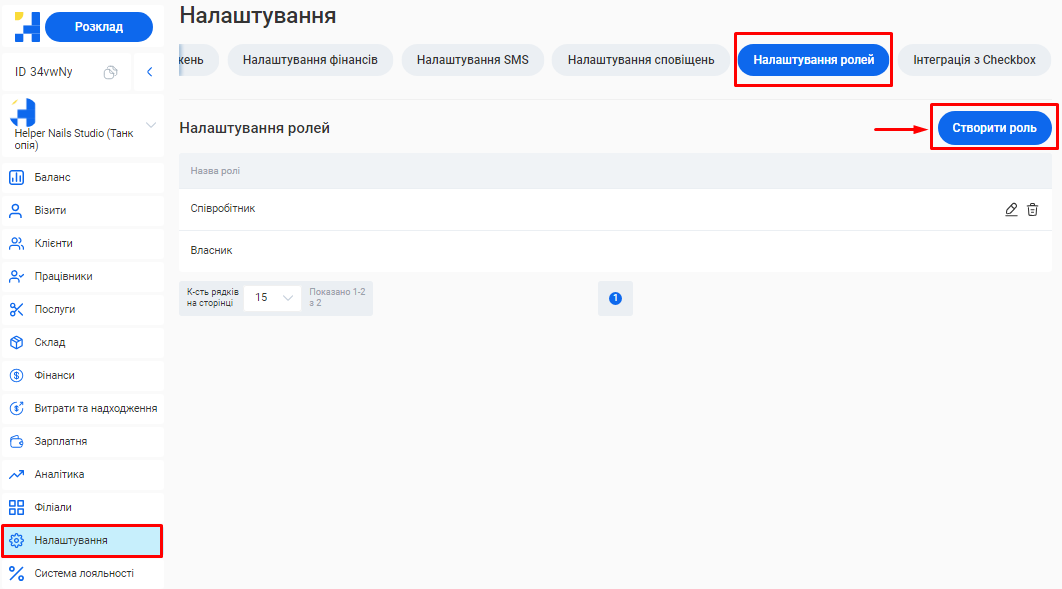 - Створення посади та налаштування ролей