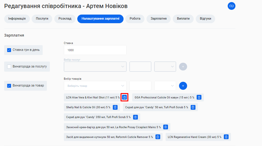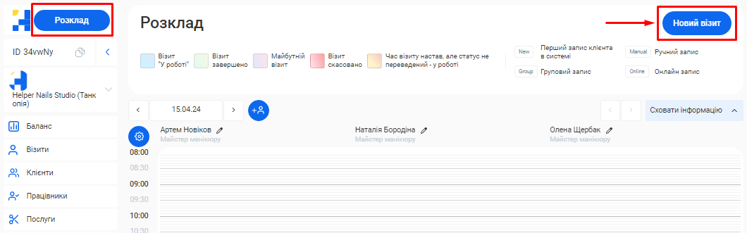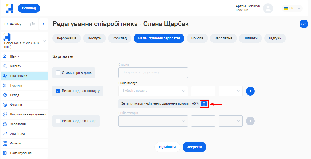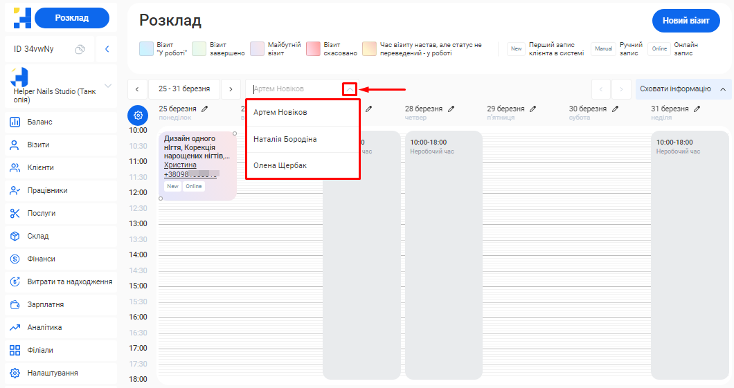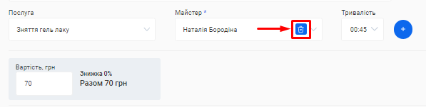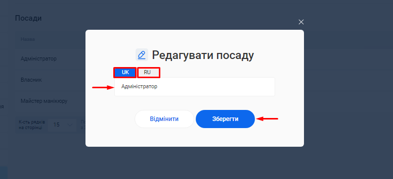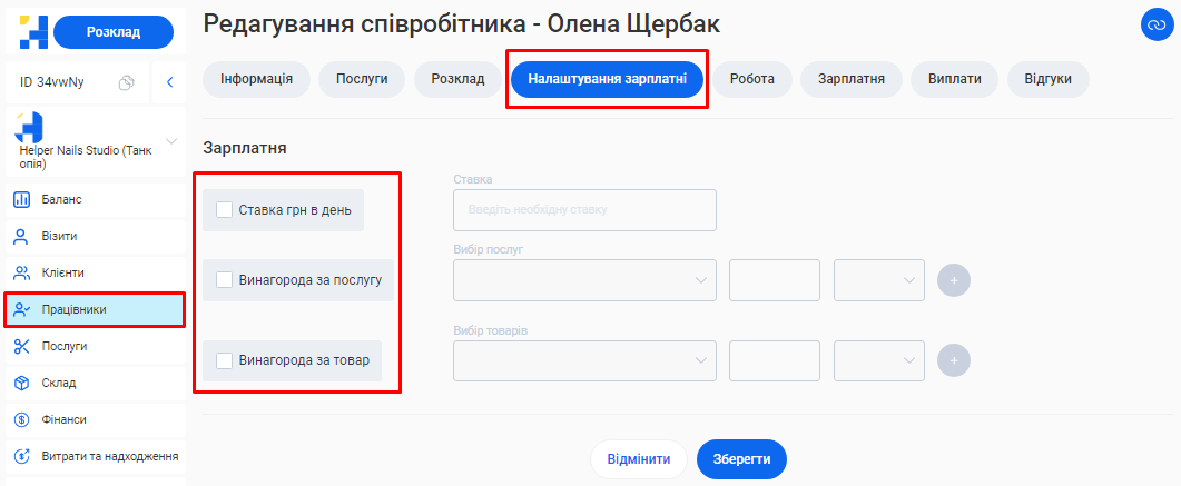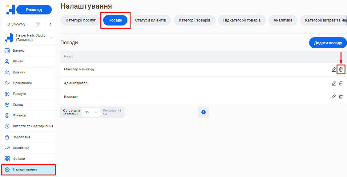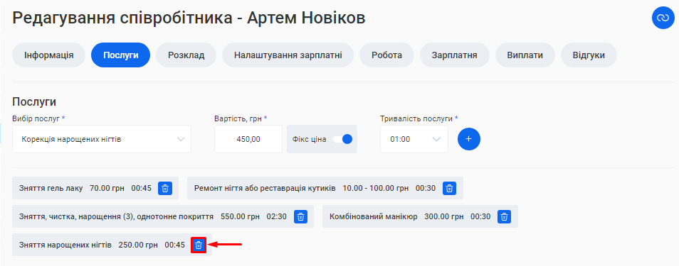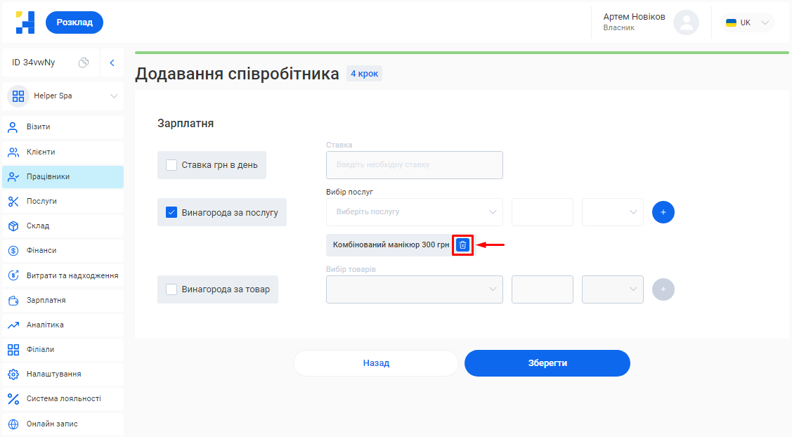 - В полі «Посада співробітника» вкажіть посаду, яку займає фахівець. Наприклад, Майстер манікюру, Перукар або Адміністратор.