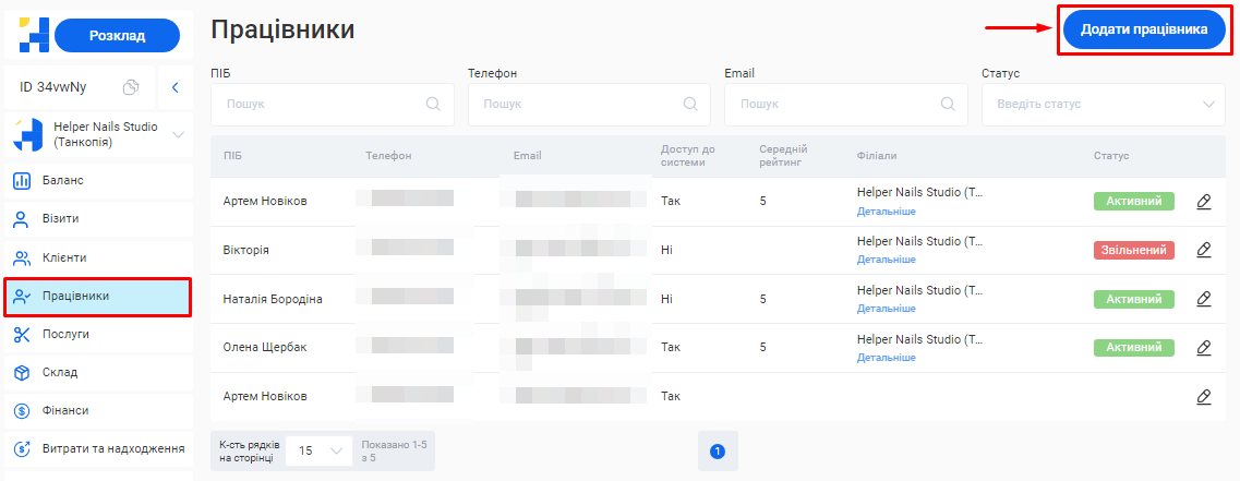 1. Зайдіть в розділ «Працівники» свого особистого кабінету.