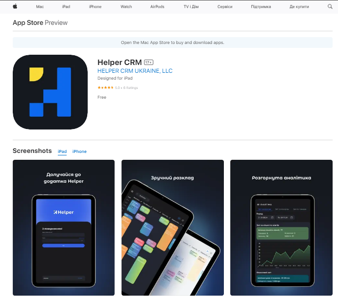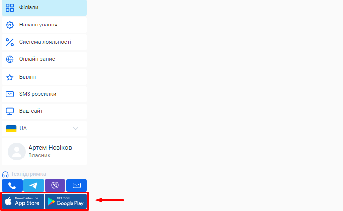 - Також ви маєте змогу одразу встановити мобільний додаток Helper CRM для IOS/Android. Для цього натисніть на відповідну іконку магазину та перейдіть до Google Play або App Store для скачування.