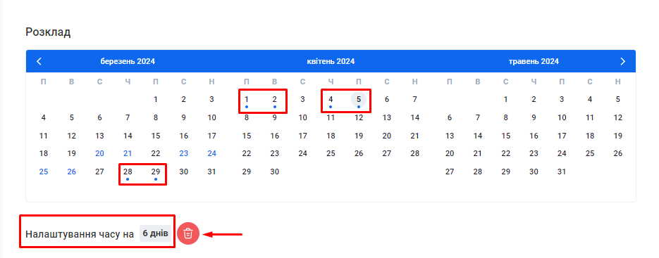 Примітка! У ролі часового періоду тут використана інформація про стандартні години роботи філії, що була внесена до CRM при створенні та редагуванні філіалу. |