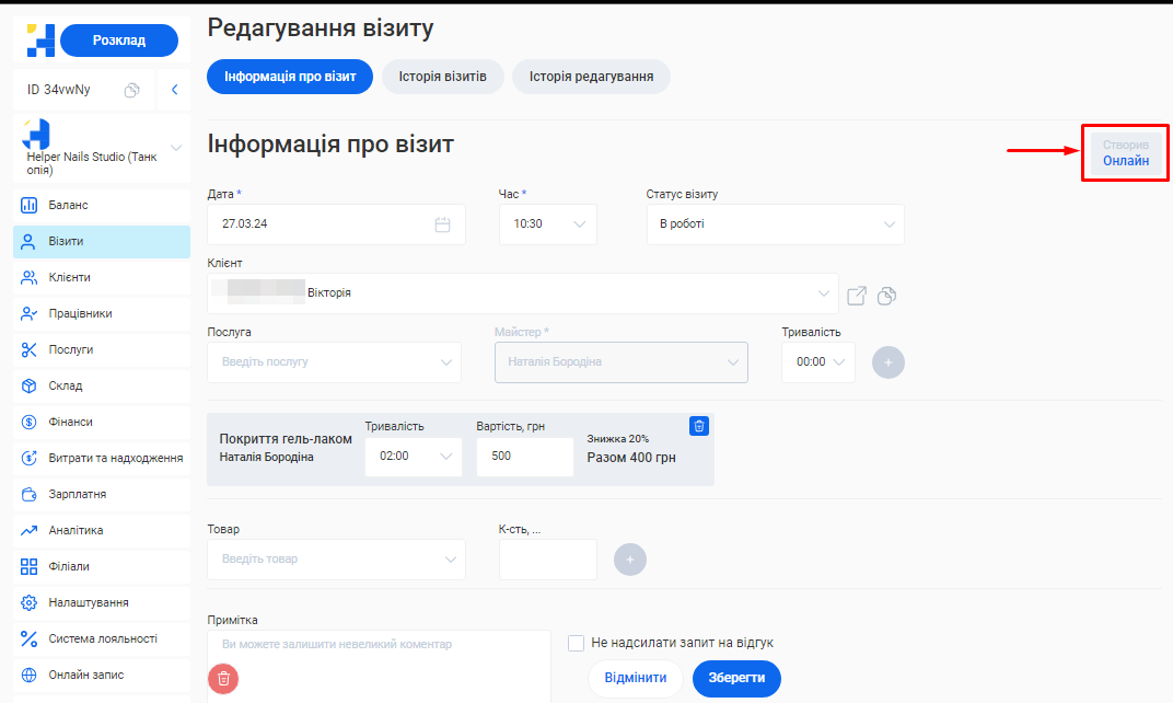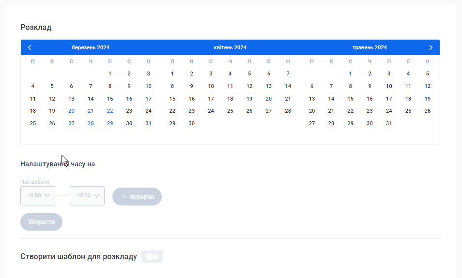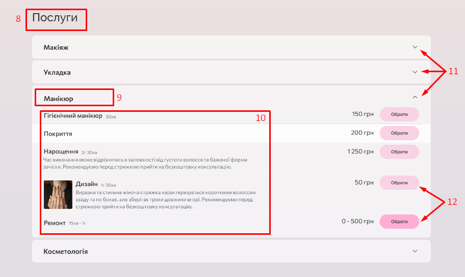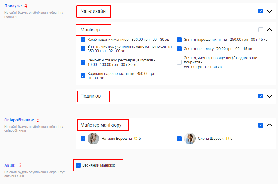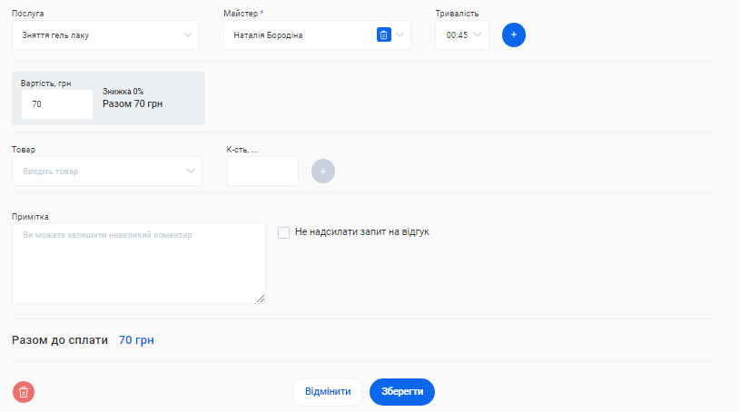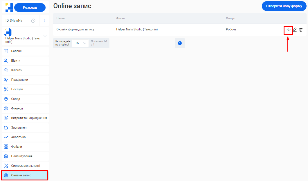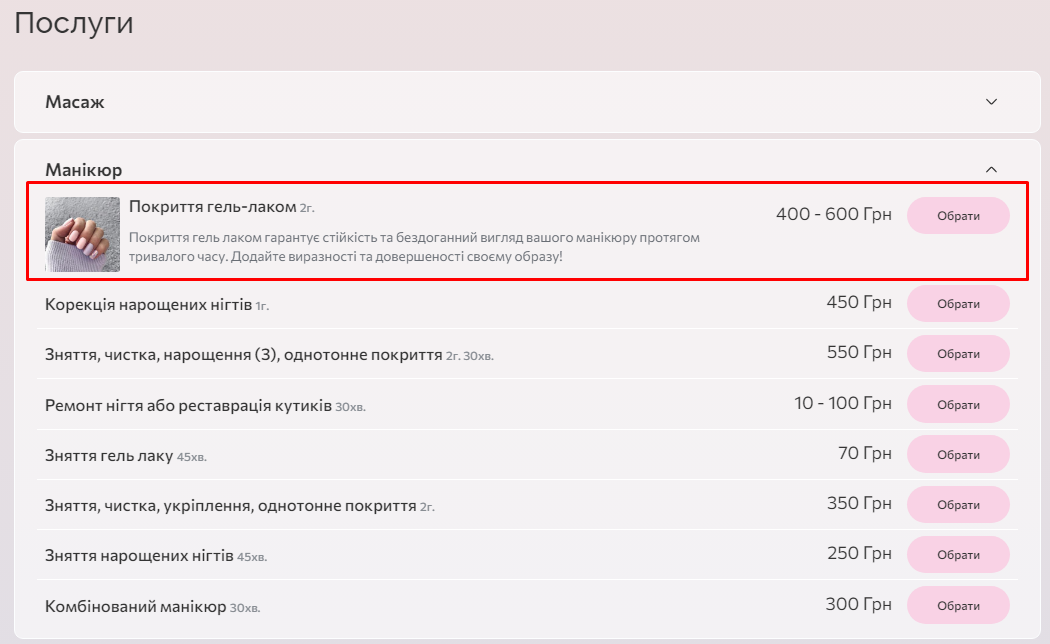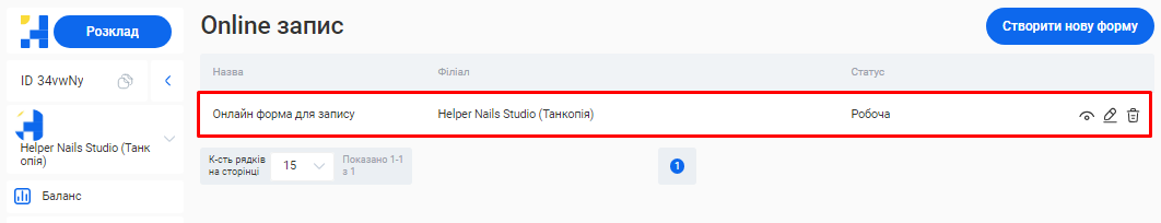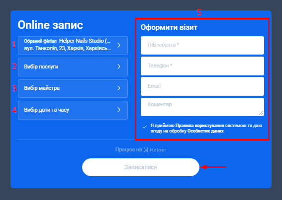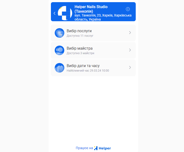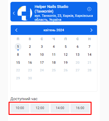 - На базі інформації, яку ви вказали у попередніх кроках налаштувань, для вас буде автоматично створена онлайн-форма запису клієнтів. За допомогою онлайн-форми ваші клієнти можуть самостійно забронювати потрібну їм послугу.