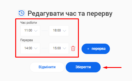 - В полі «Час роботи» вкажіть години роботи компанії.