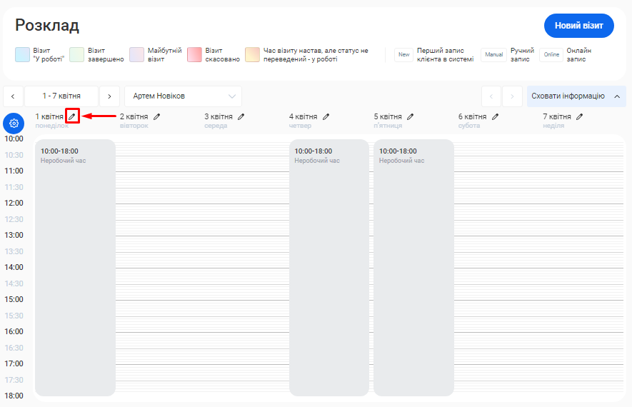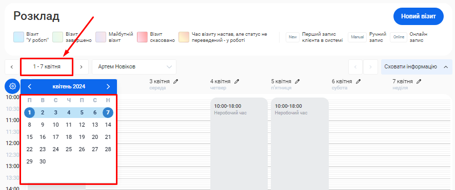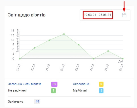 - Усього візитів. Загальна кількість візитів у будь-якому статусі за заданий проміжок часу.