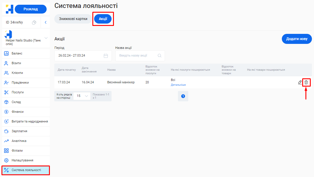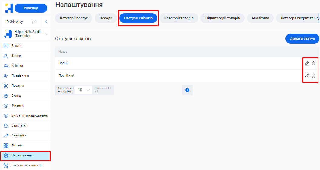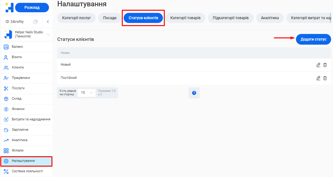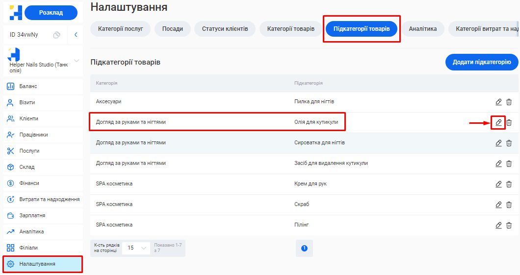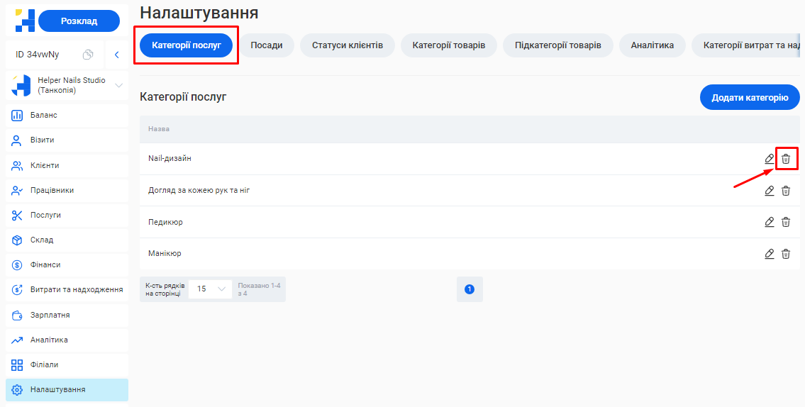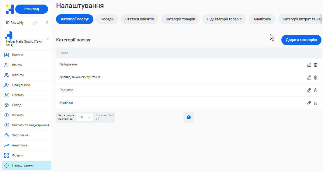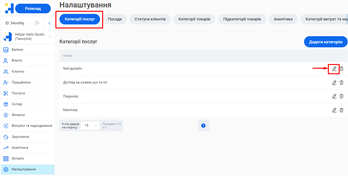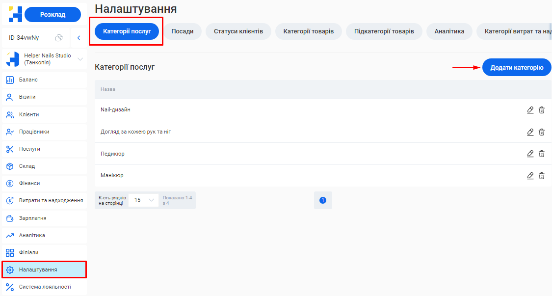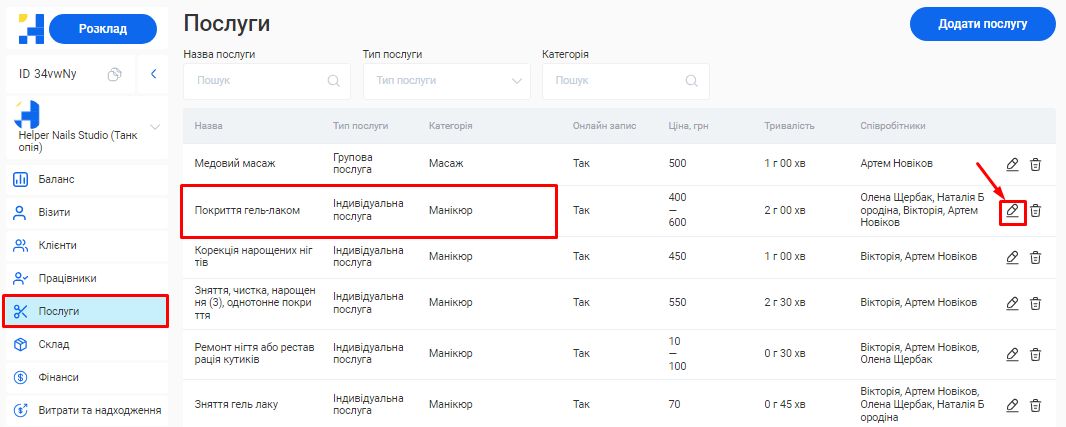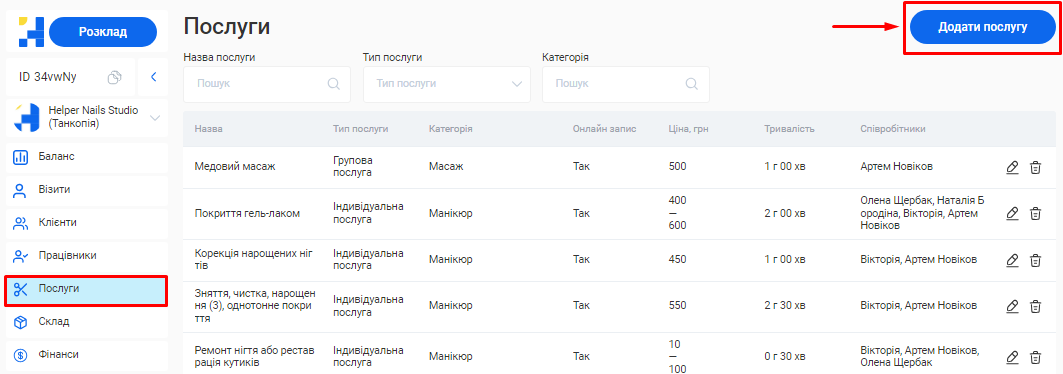 Додати або відредагувати послуги ви зможете у розділі «Послуги» вашого особистого кабінету.