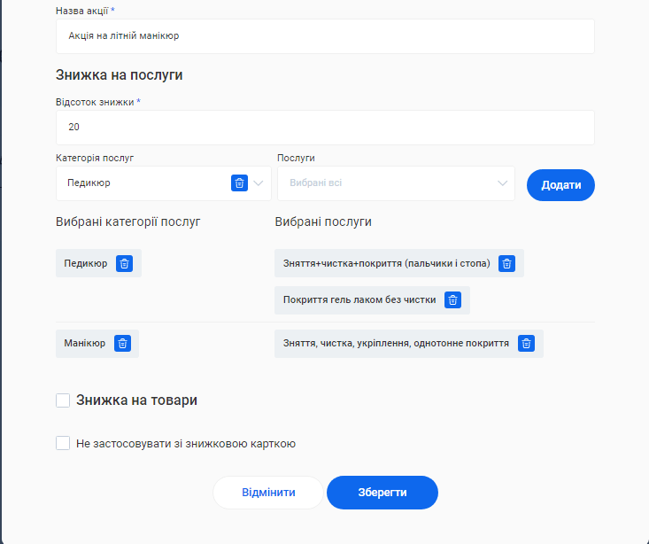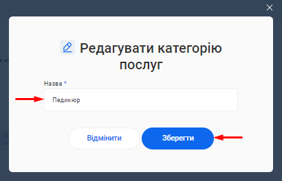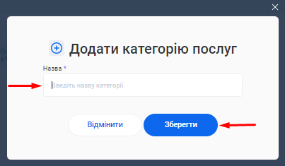 - В полі «Категорія послуги» вкажіть категорію, до якої належить ця послуга. Наприклад, Манікюр. Це допоможе організувати послуги в CRM і знаходити їх швидше.