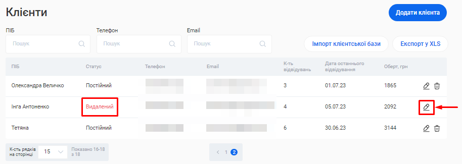 - Скільки клієнтів втрачено. Клієнти, які зверталися за послугами протягом 60 днів, та не повернулися у рамках вибраного періоду, вважаються "втраченими".
