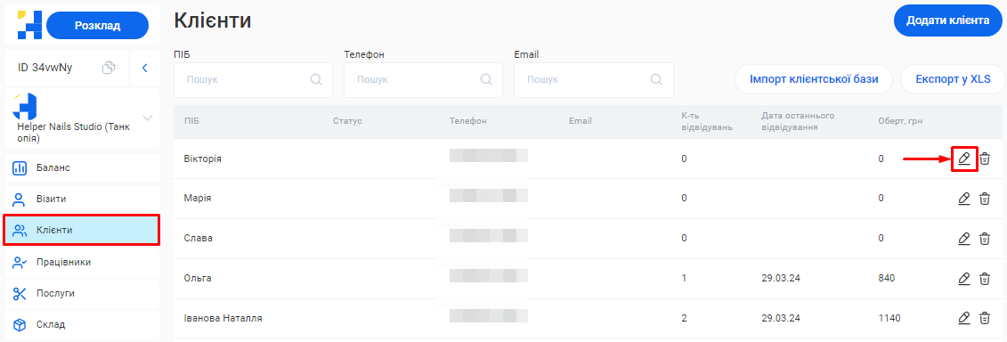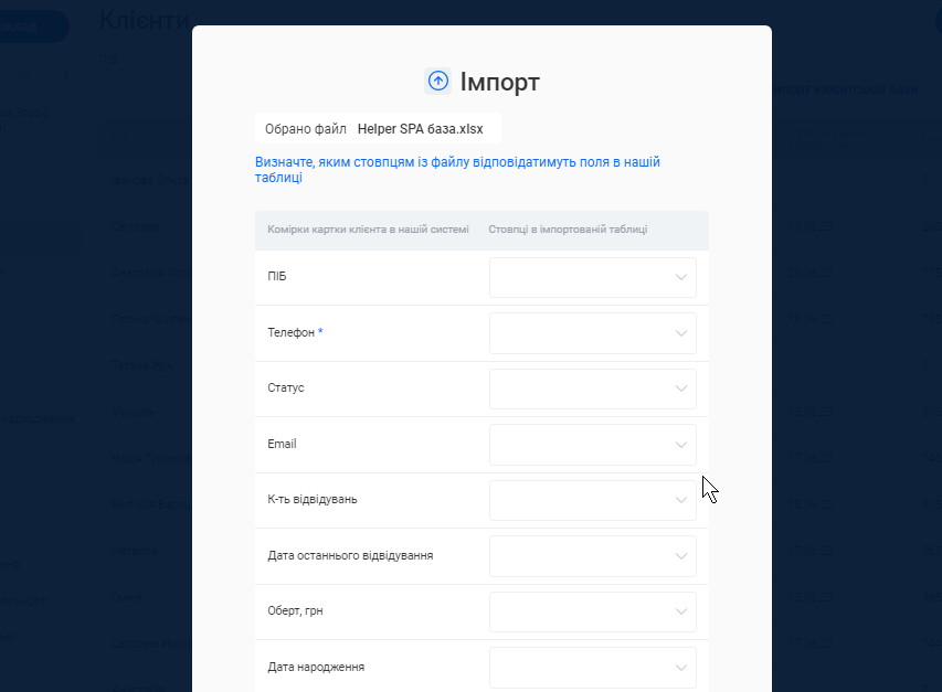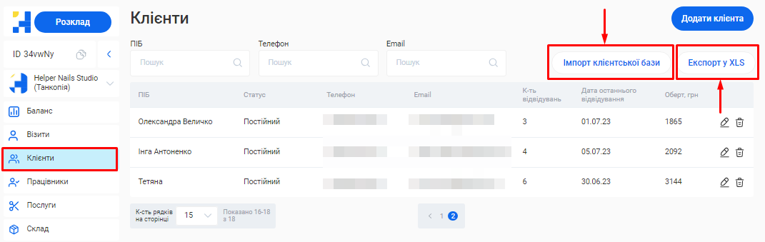 - Імпорт клієнтської бази