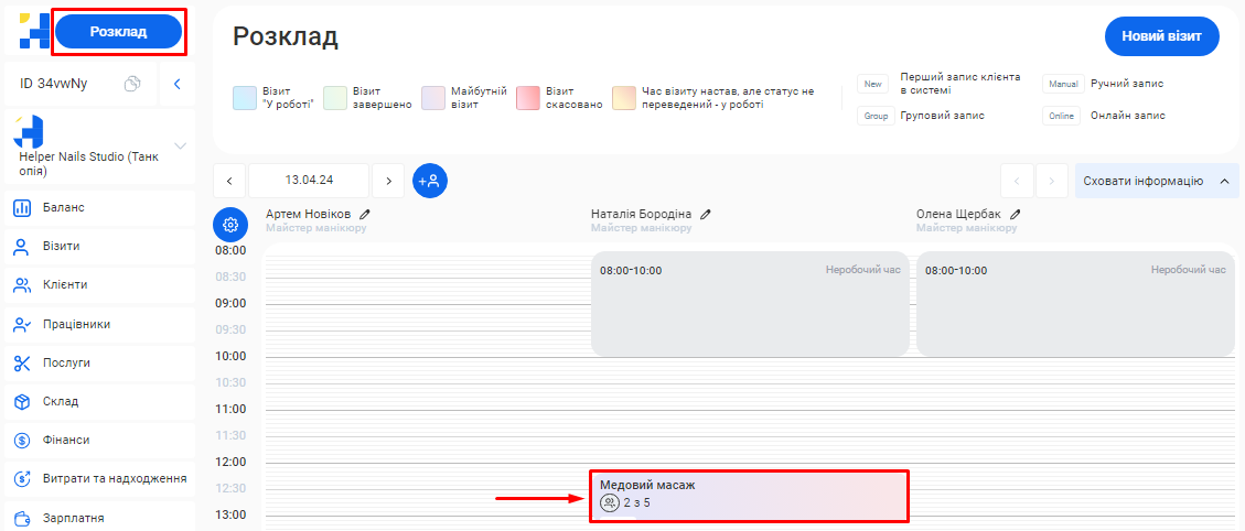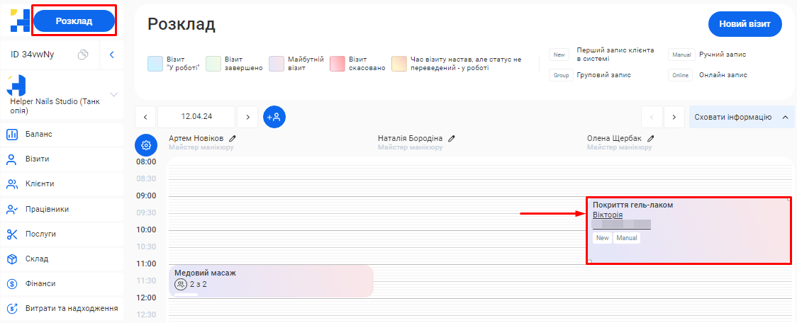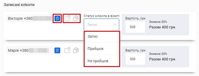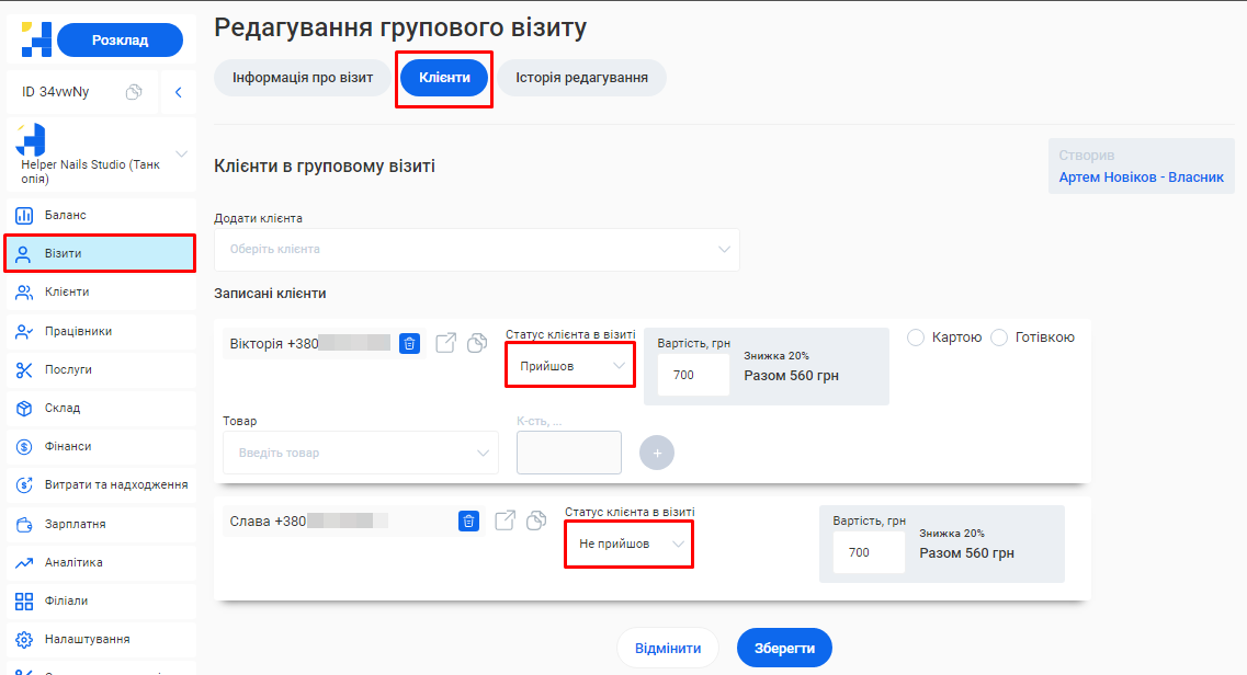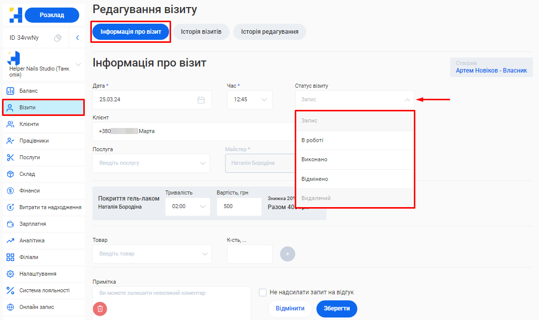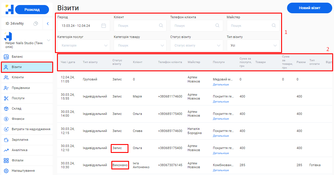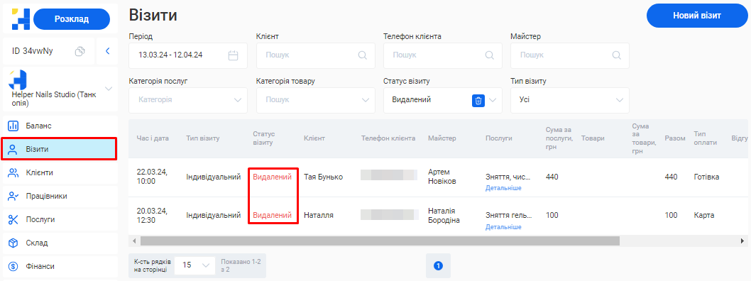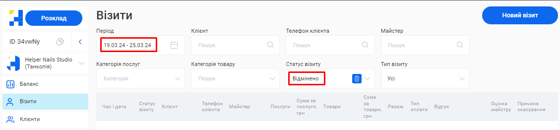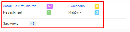 - Скільки візитів було скасовано та скільки успішно виконано.