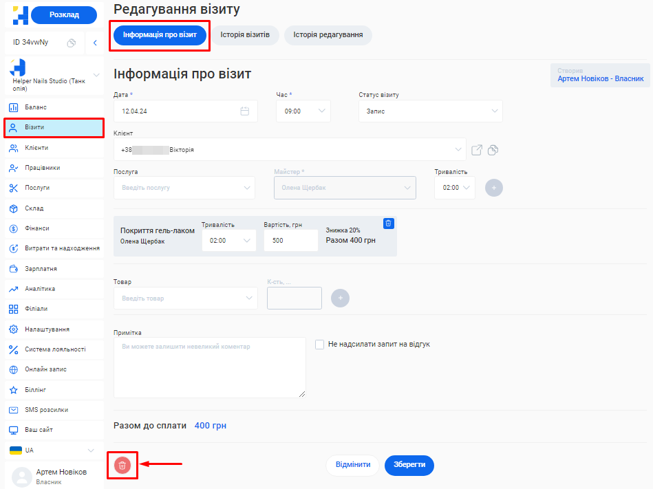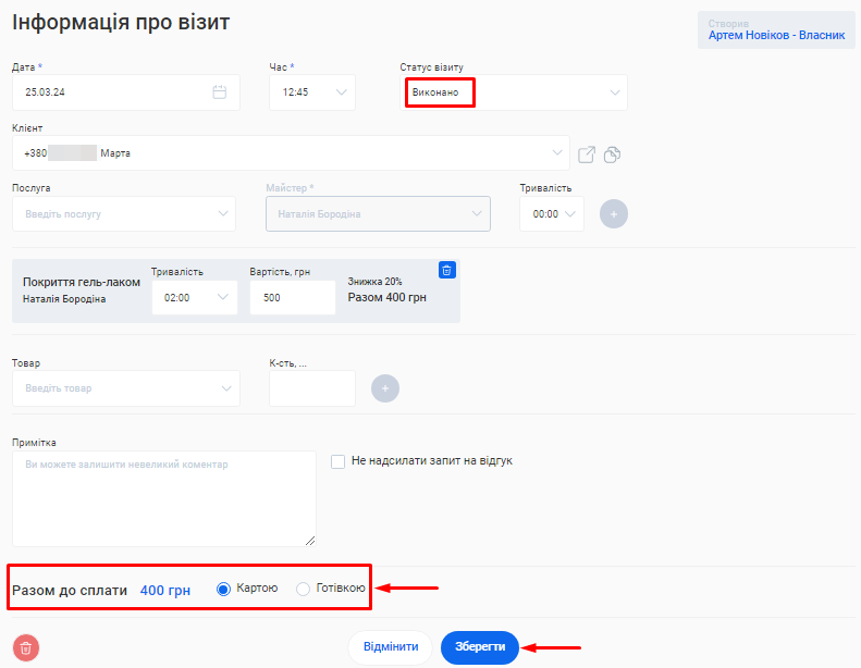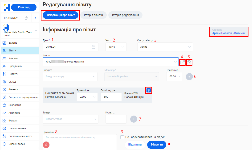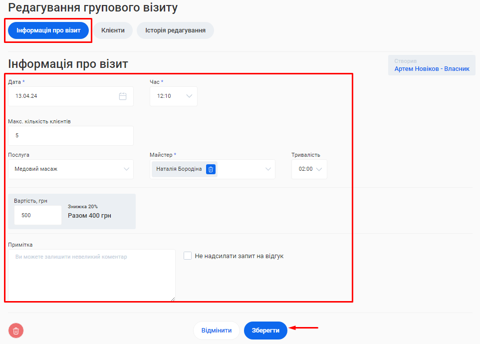6. Ще раз натисніть кнопку «Зберегти» знизу форми редагування власника.