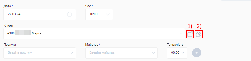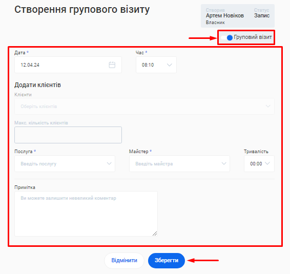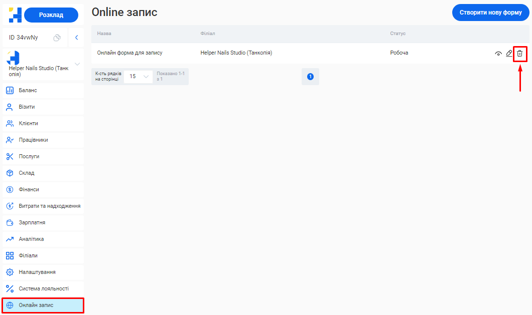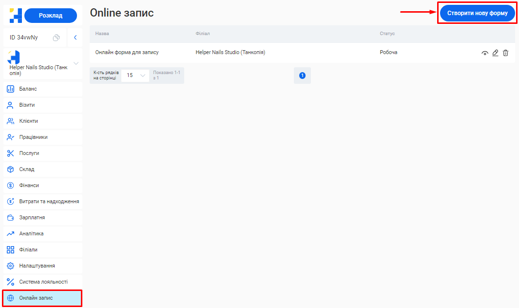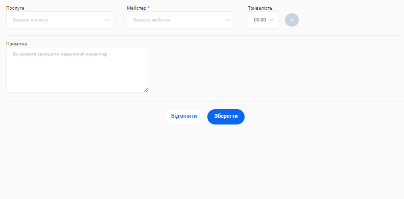 - У формі online запису на даному етапі відображатиметься лише один філіал, послуга та співробітник. Більше інформації про філіали, послуги та фахівців необхідно буде внести додатково у відповідних розділах особистого кабінету.