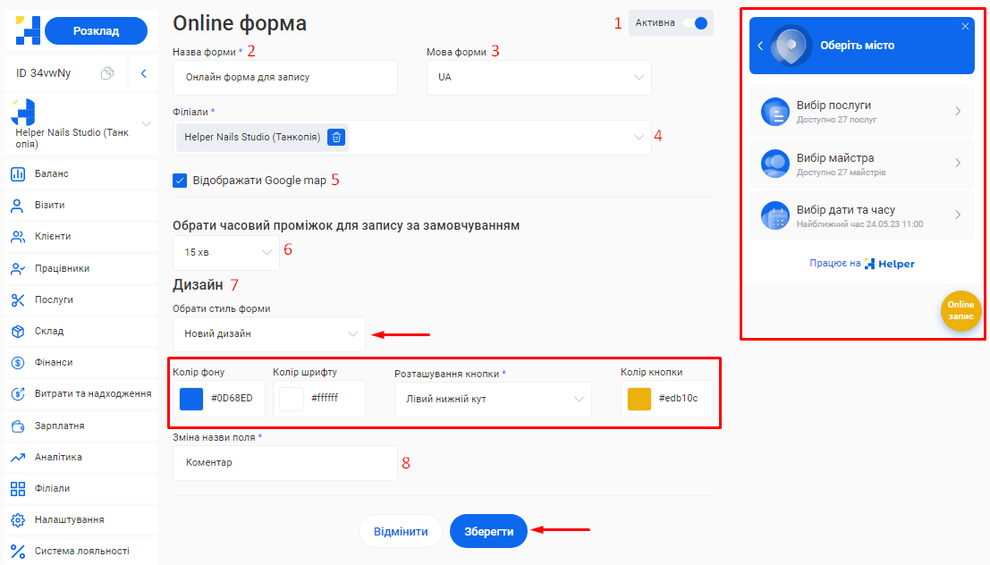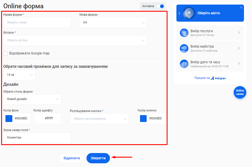 Крок 4. Створення онлайн-форми для запису клієнтів та завершення налаштувань: