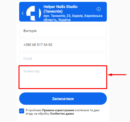 4. Поставте прапорець у чекбоксі «Згоди на обробку користувацьких даних».