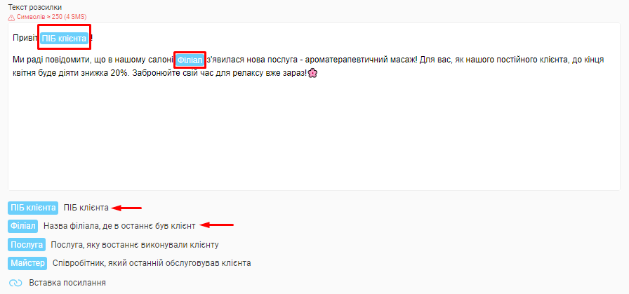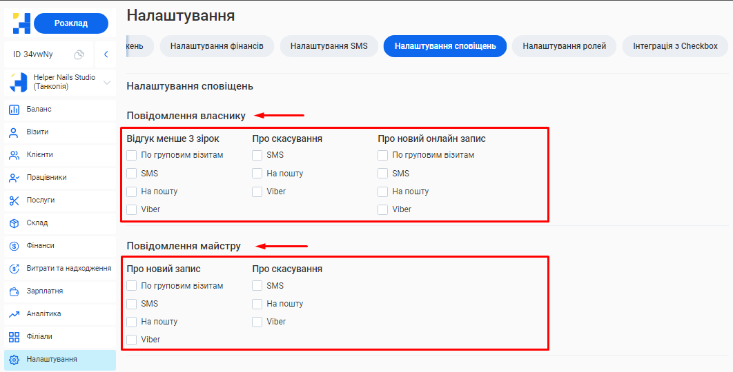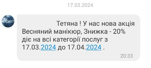 - Кому було відправлено розсилку (клієнту, майстру чи власнику) та номер телефону цієї людини.