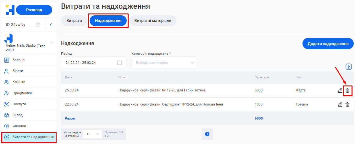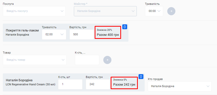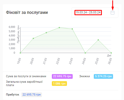 - Сума за послугами. Це сума коштів, отримана за надання послуг за встановлений період (вже з урахуванням акційних знижок та бонусів по знижковим карткам).