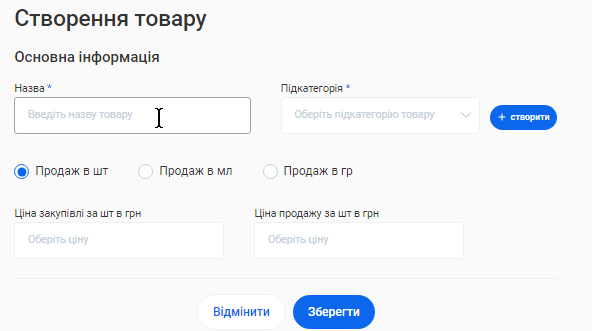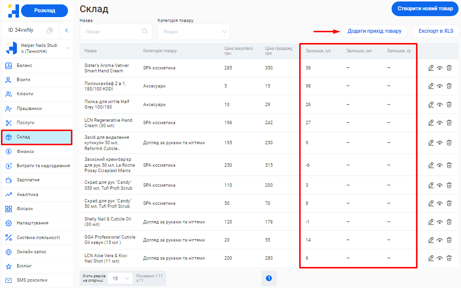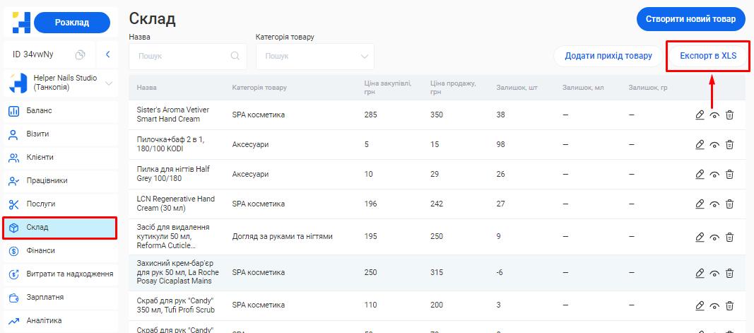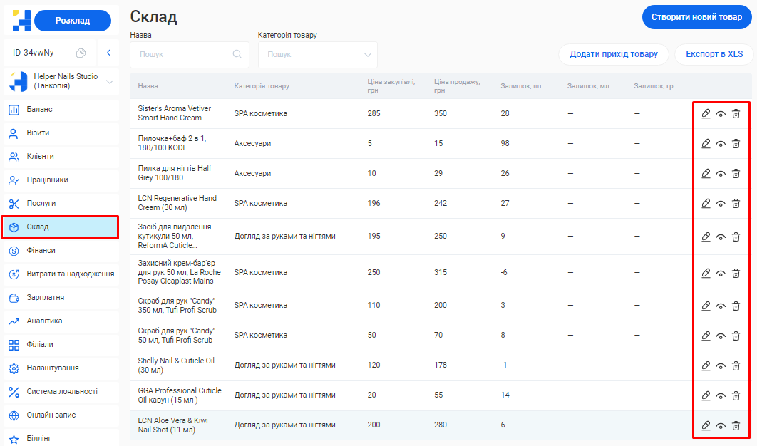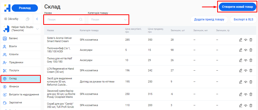 - Склад та товари
