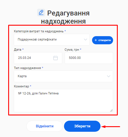 5. Натисніть кнопку «Зберегти».