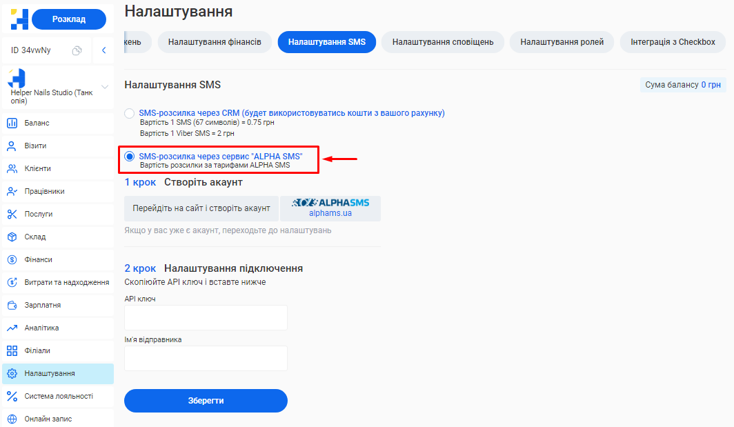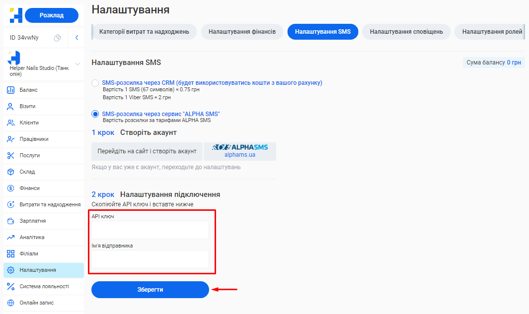 - Інтеграція з AlphaSMS та сповіщення