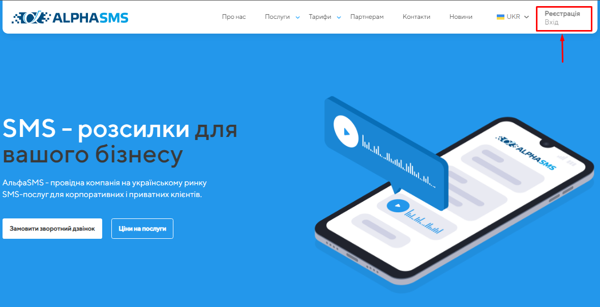 - Варіант 2. Натисніть на кнопку «Вхід в CRM» у правому верхньому кутку сайту та клікніть на надпис «Реєстрація» внизу форми входу.