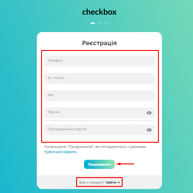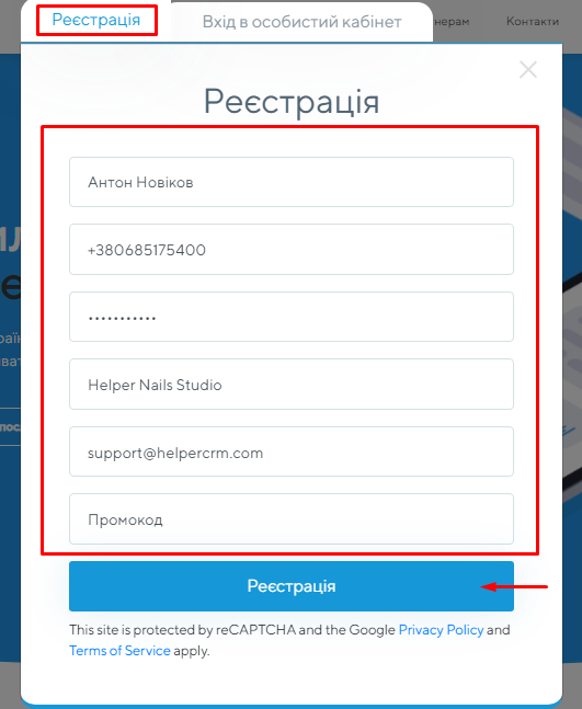 5. Переконайтеся, що ви правильно заповнили всі поля, та натисніть на кнопку «Реєстрація».