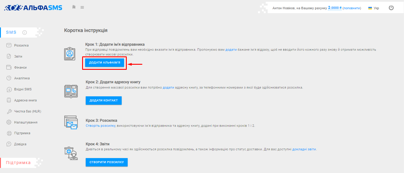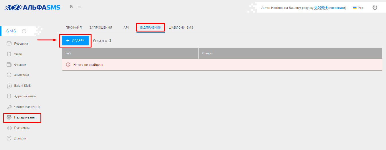 Крок 2. Натисніть на вкладку «Історія SMS розсилок».