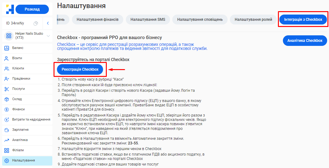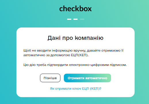 Після реєстрації ви автоматично пройдете швидку процедуру налаштування філіалу.